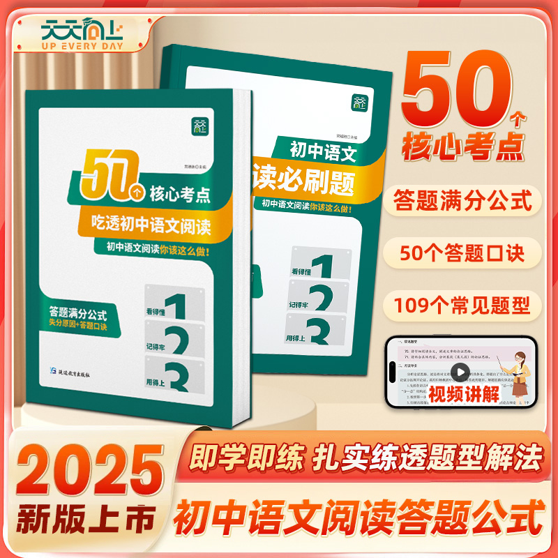 天天向上50个核心考点吃透初中语文阅读理解专项训练七八九年级上下册阅读答题模板初一二三课外组合训练方法公式法L常见文体作文