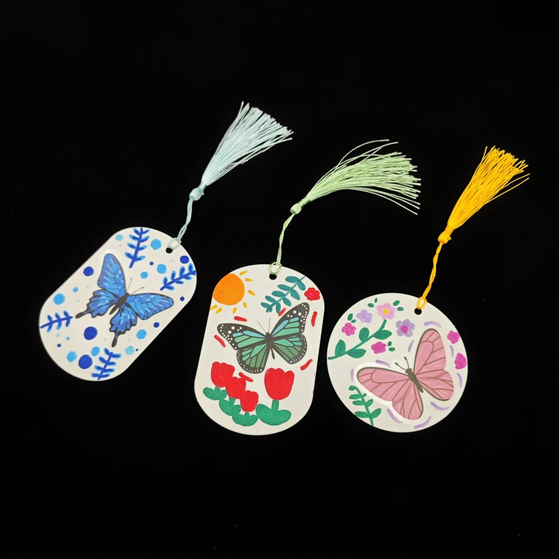 空白书签学生大漆diy简约手绘硬卡片中国风涂鸦流苏摆摊开学