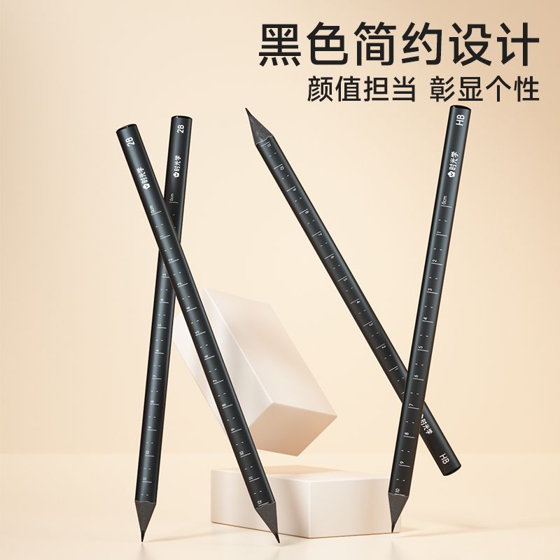 时光学黑木黑色铅笔HB小学生专用一二三年级学生石墨黑2B铅笔儿童幼儿园学习文具用品套装考试涂卡练字黑色笔