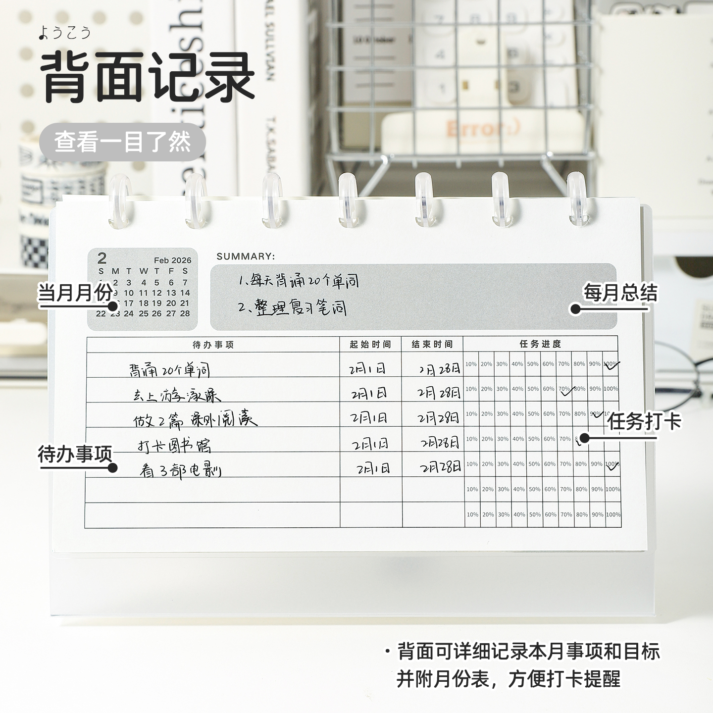 2026款台历日历本创意简约桌面摆件新款月历学生用每周计划本商务办公工作打卡本备忘录记事本考研日历台历本