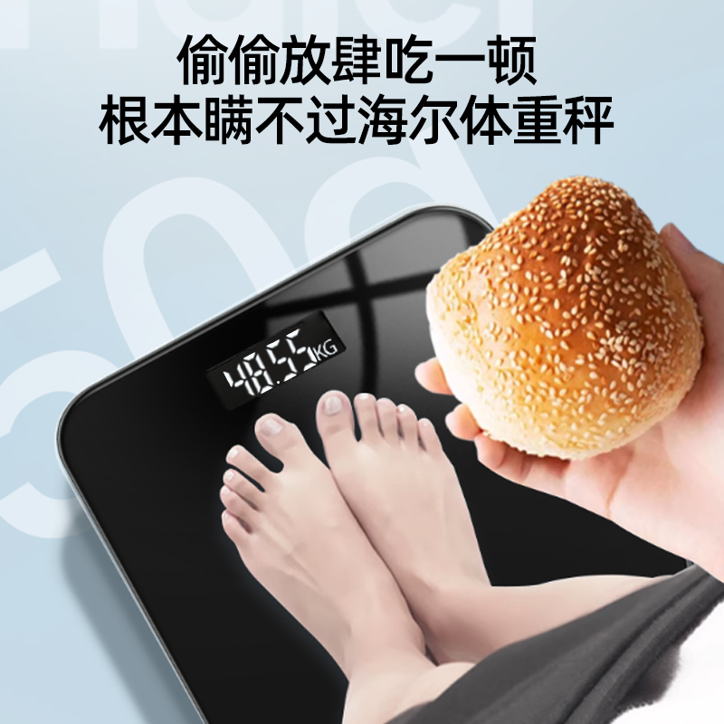 海尔体重秤家用高精准度小型电子秤充电池款人体脂减肥专用称重计