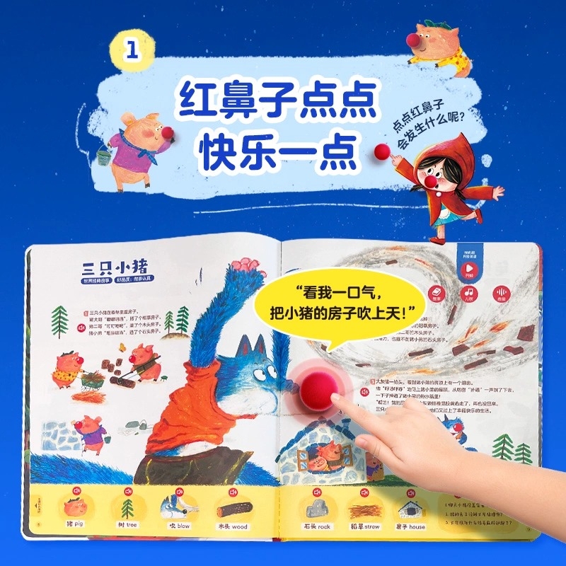 学而思红鼻子点点睡前故事发声书触摸有声播放器365夜3到6岁0哄睡神器宝宝熏听机儿童儿歌点读会唱歌的认知早教绘本Q伴读音乐英文