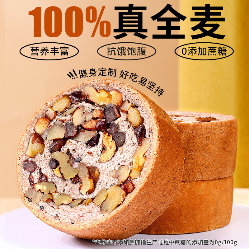 全麦面包果仁车轮饼坚果欧包减低0添早餐大列巴主零食南瓜抹茶