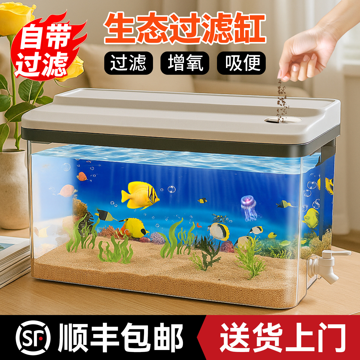 鱼缸过滤制氧自循环一体机2025新款客厅桌面家用免换水生态水族箱
