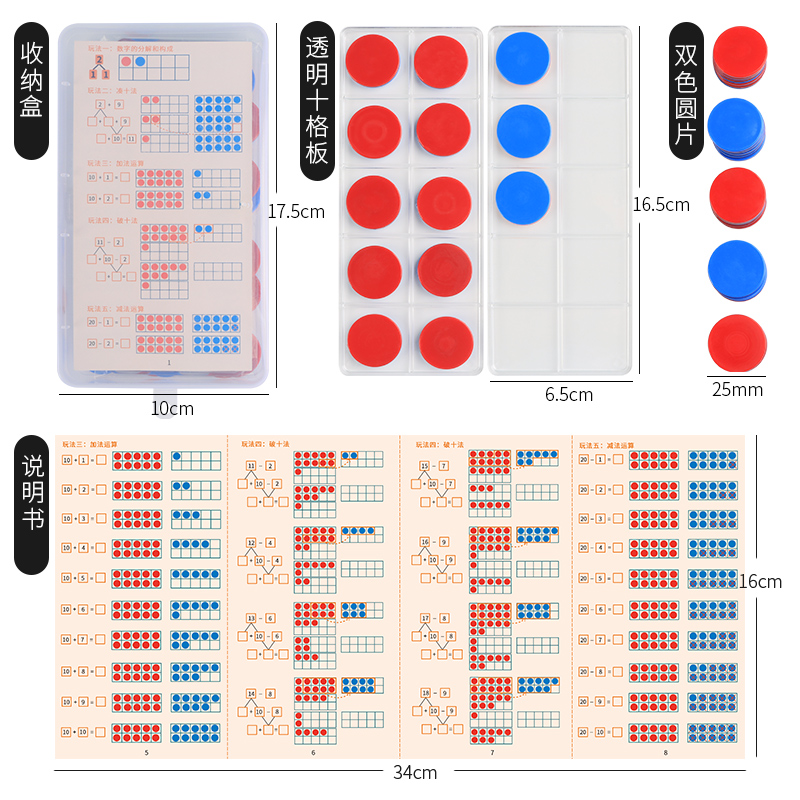 红蓝双色片数学启蒙十格阵教具小学一二年级数字分解思维训练20内加减法运算数感幼儿园数学加减神器