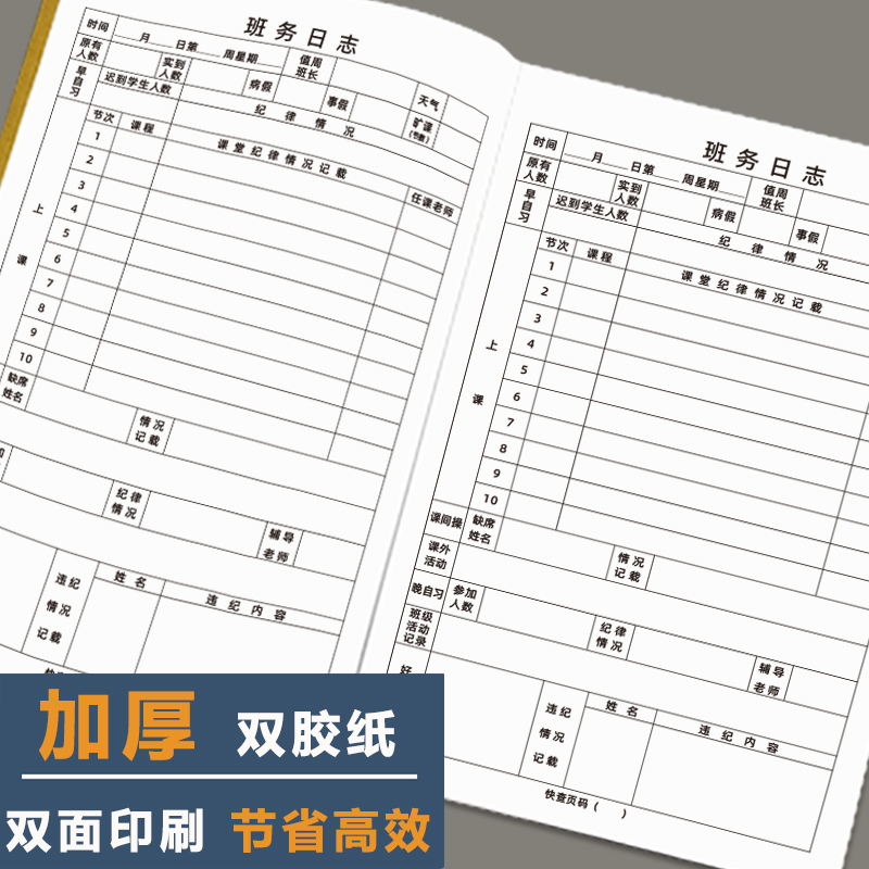 班务日志日记本日常文化用品笔记本校务日志 学校学生班级笔记本各班考勤记录本课堂纪律记载本子加厚可定制