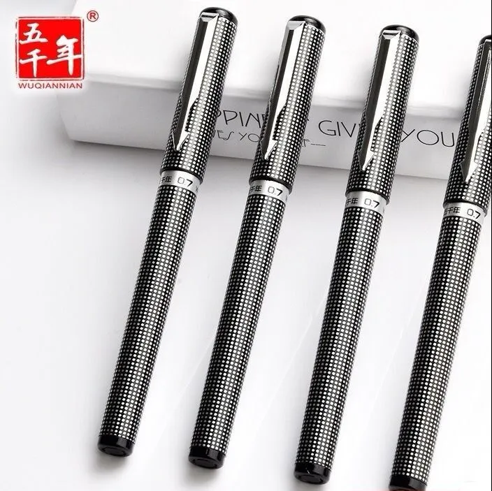 五千年0.7mm黑色签字中性笔财务办公商务水笔子弹头水性笔377