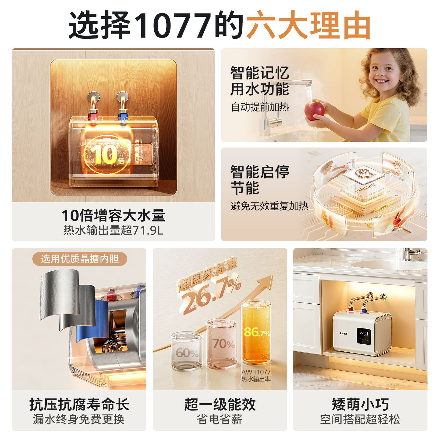 【国补20%】飞利浦小厨宝家用厨房小型储水式速热一级能效热水宝