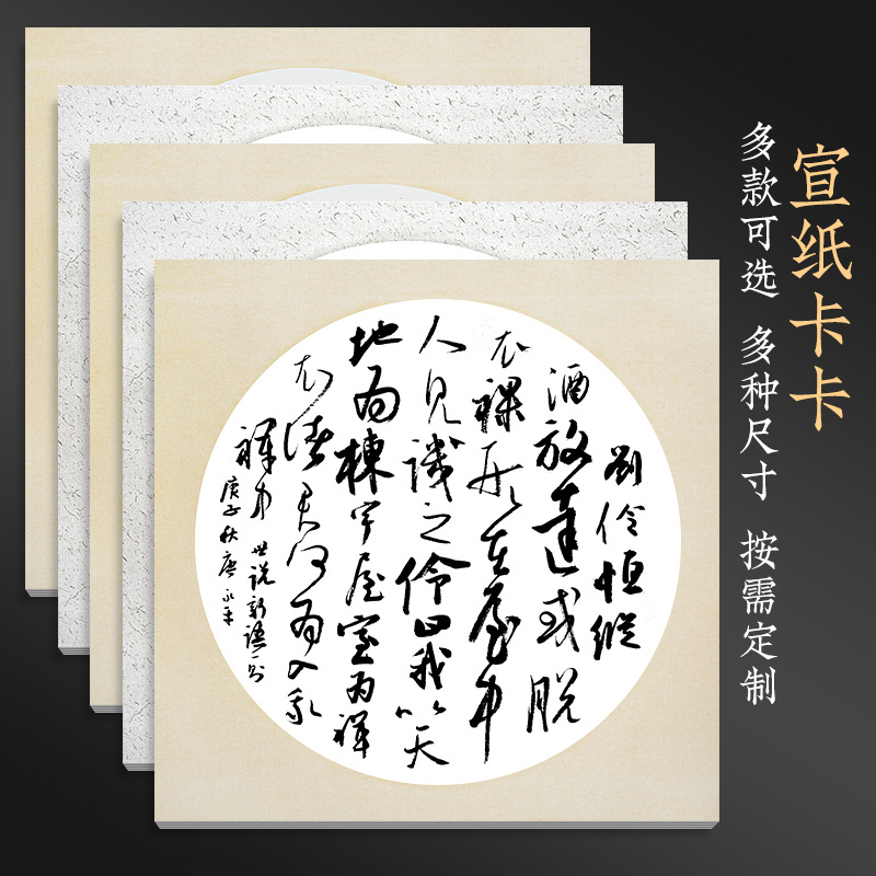 宣纸卡纸手工圆形生宣加厚镜片纸国画书法麻纸仿古空白宣卡纸