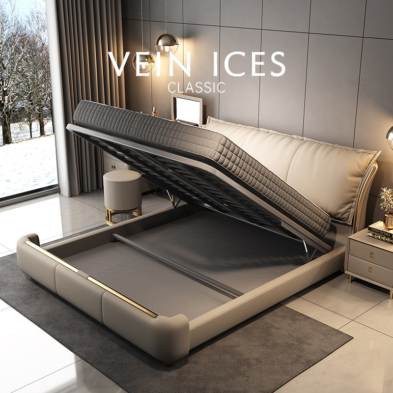 意式轻奢真皮床储物平移气压款储物双人床大黑熊软包床主卧结婚床