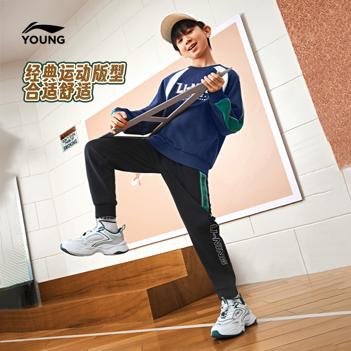 李宁童装卫裤男女大童2025新款运动生活系列秋季束脚针织童装