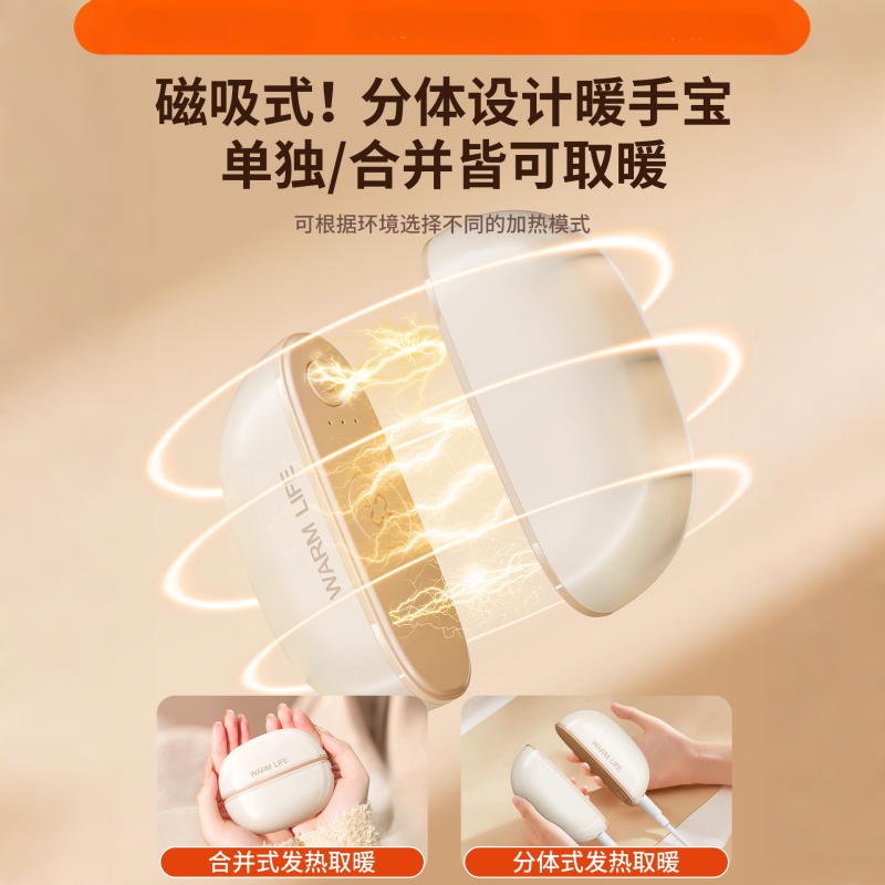 2025新款磁吸暖手宝充电款二合一分体式女生礼物暖宝宝防爆3C认证学生儿童热水袋usb随身便携手握取暖神器