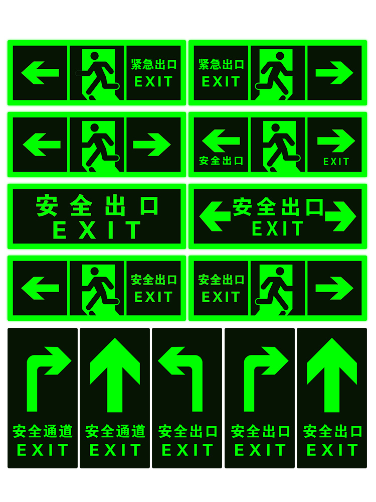 灭火器指示标识牌疏散警示贴 安全出口消防通道标示标志指示牌墙贴荧光夜光免接电左右直行自粘式提示牌贴纸