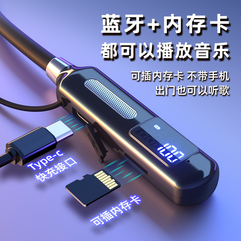 日本品质挂脖式蓝牙耳机大电量降噪黑科技运动计步无线耳机超长续