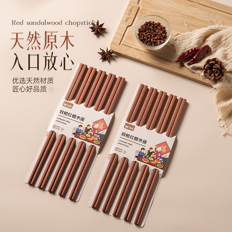 双枪红檀木筷子家用高档新款抗菌防霉长儿童10双家庭装油炸耐高温