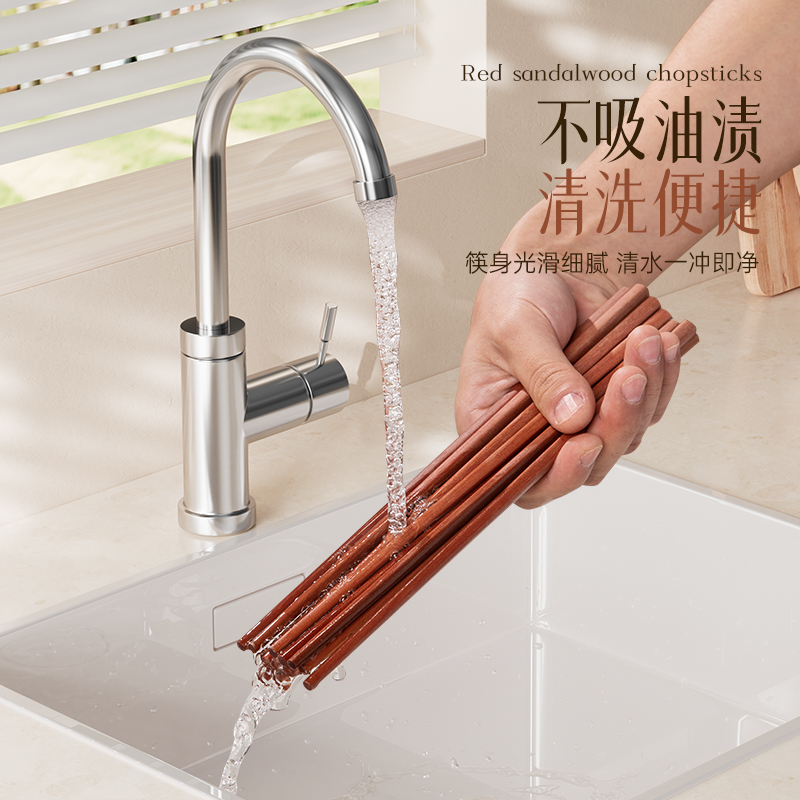 利瓷鸡翅木筷子家用防滑防霉木质快子10双20双家庭套装木箸