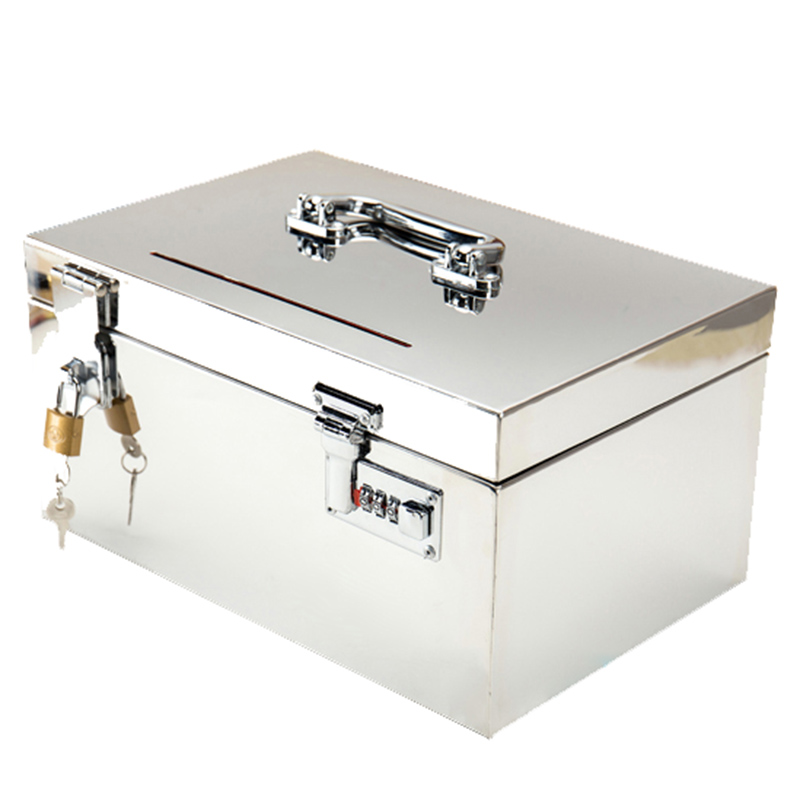 保险箱家用小型家用钱箱不锈钢现金保管箱密码机械锁投币手提夹万