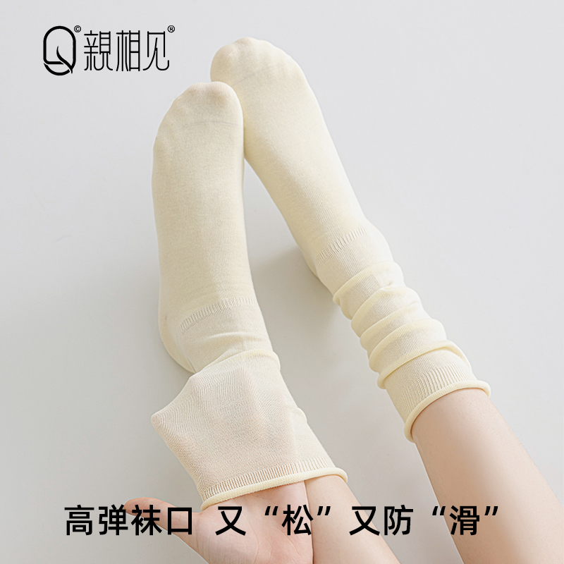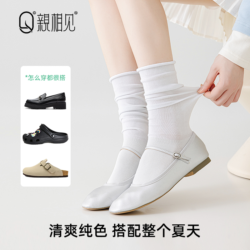夏季薄款白色堆堆袜子女纯棉芭蕾风搭配小皮鞋防臭透气无骨月子袜