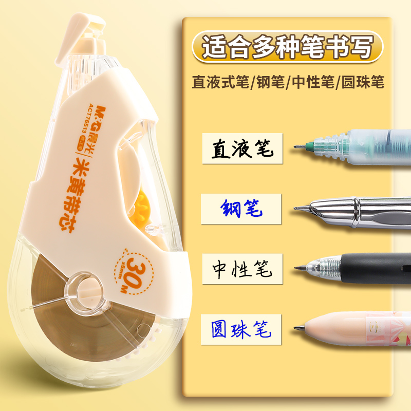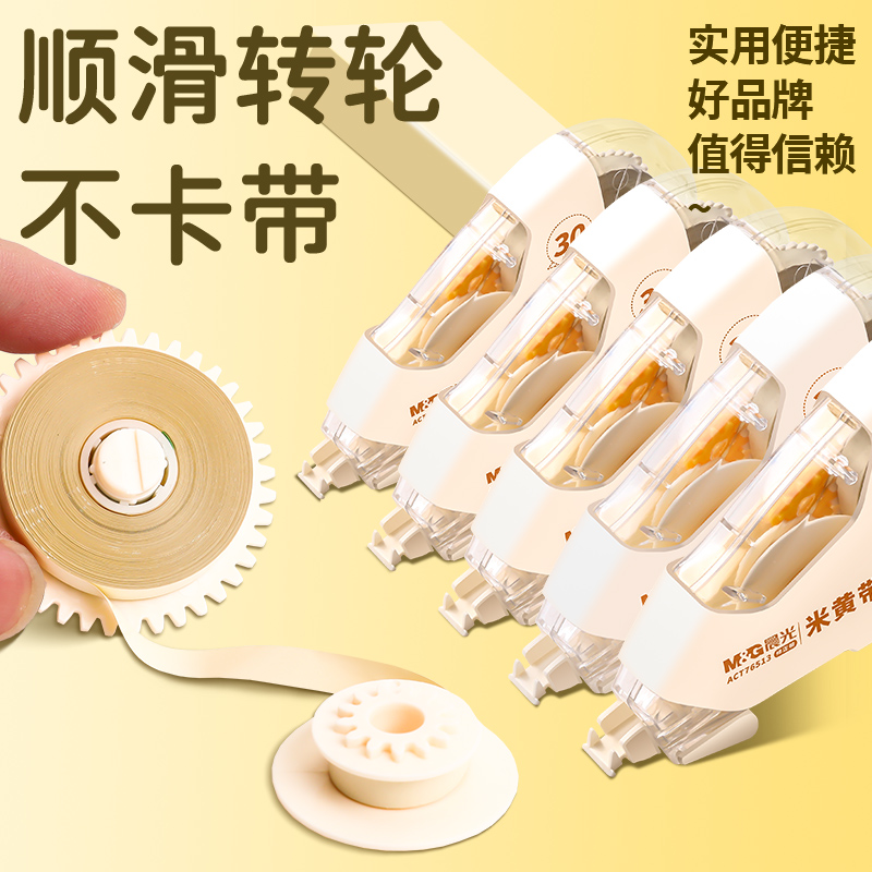 晨光护眼色修正带小学生专用大容量米黄原纸色隐形带静音涂改带改正带顺滑初中生高颜值休正带修改消字涂改液