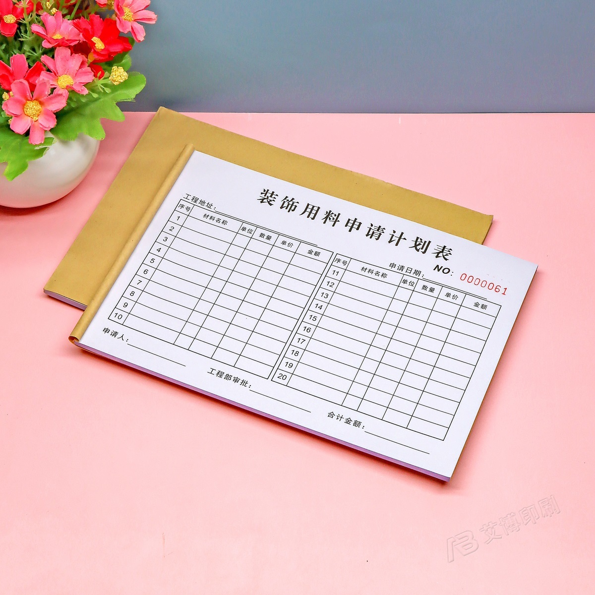 装修工程施工材料计划表二联装饰用量用料采购申请明细表清单定制