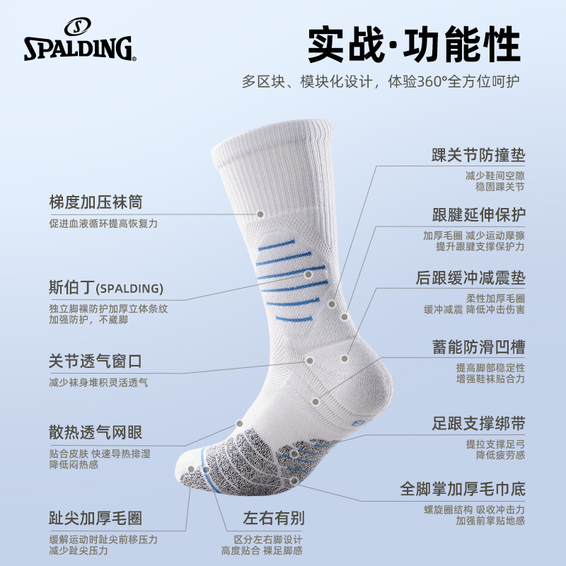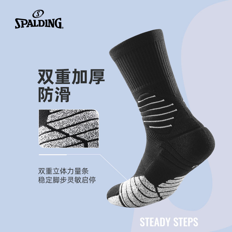 斯伯丁专业篮球袜子男夏季禁区加厚毛巾底长筒精英减震透气运动袜