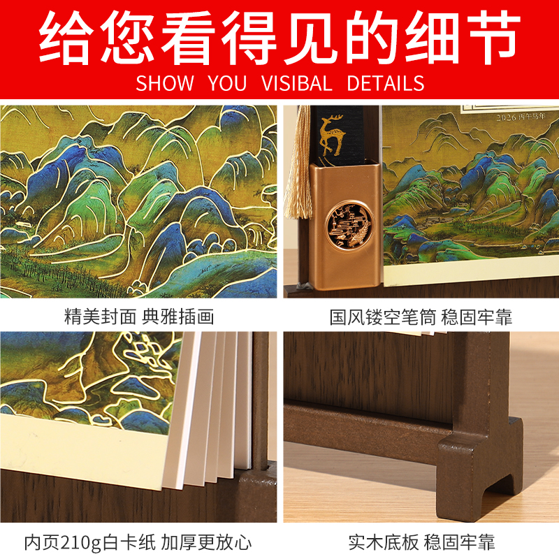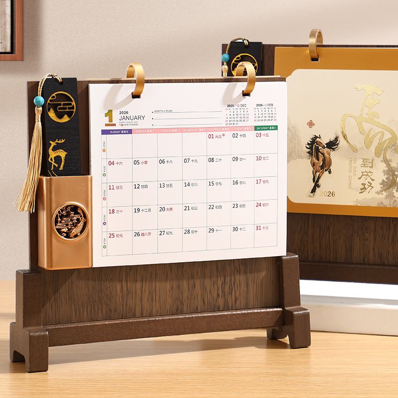 2026马年新款台历实木金属架搭配铁艺设计能清晰规划日程的日历、月历创意造型适配商务场景每日安排超有条理