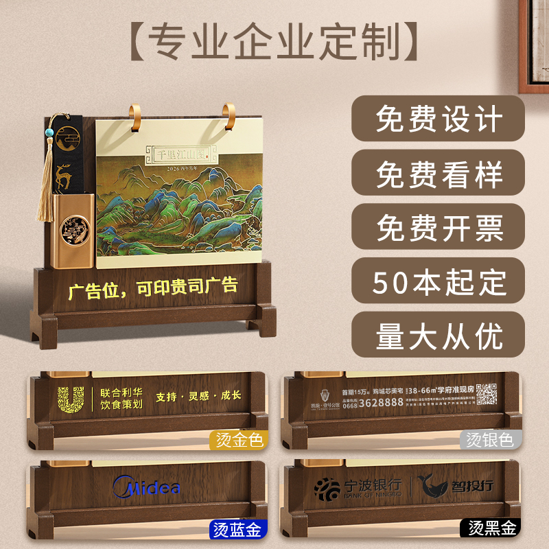 台历2026年新款日历定制logo创意简约小清新韩式办公年历个性中国风桌面摆件商务工作记事计划本订制广告月历