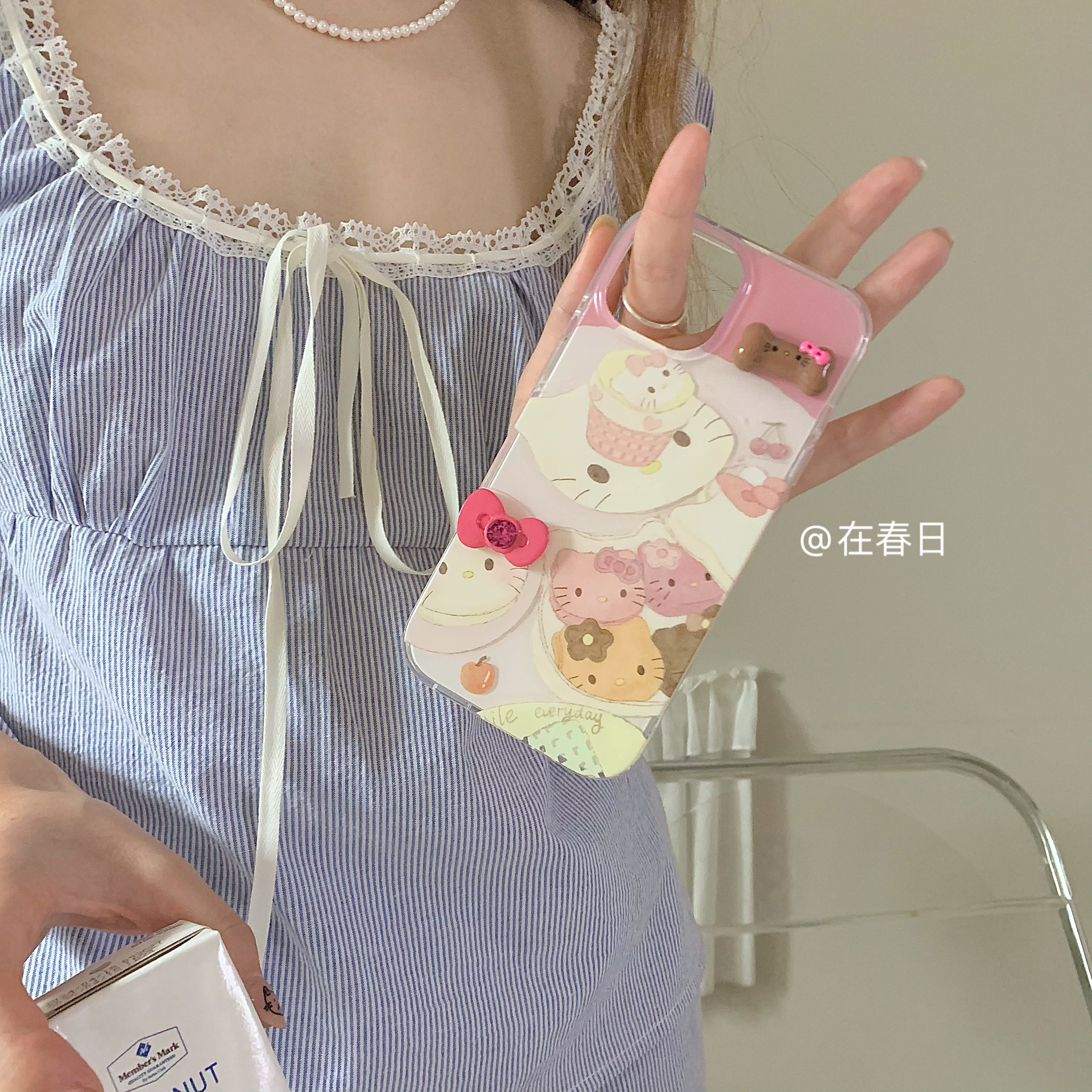 在春日ins可爱甜品Kitty链条挂绳手机壳适用于苹果15promax/14新款iPhone15pro女12保护壳13promax/13双层