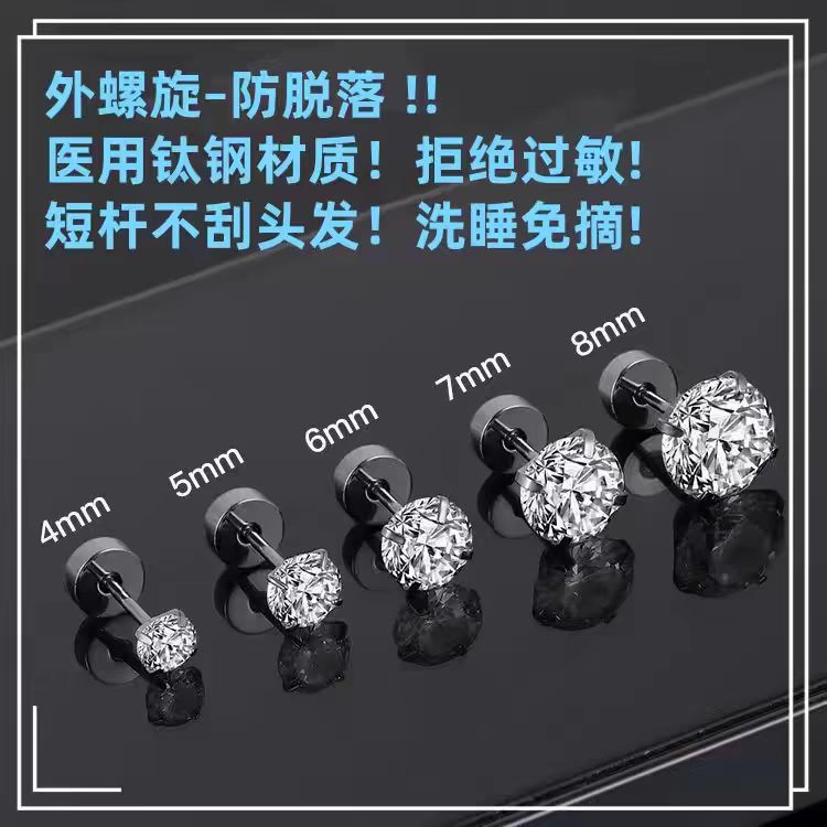 爆款超闪钛钢锆石耳钉医用级耳骨钉睡觉免摘耳轮耳蜗钉莫桑钻平底
