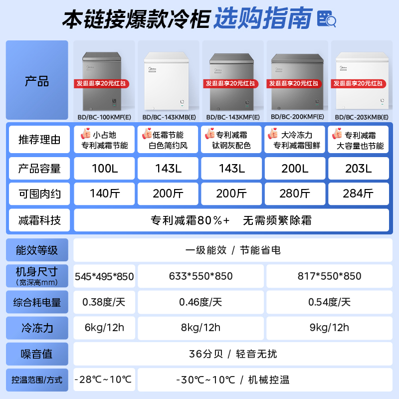 美的100/143/200L小冰柜家用商用冷柜小型冷冻柜冷藏一级官方冰箱