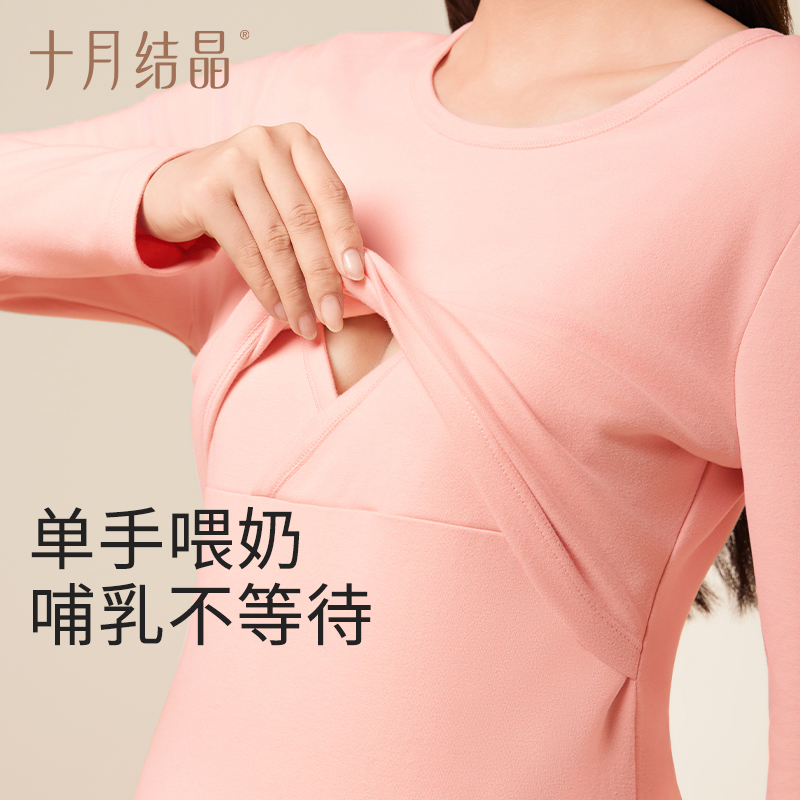 送胸垫丨纯孕妇秋衣秋裤套装棉产后哺乳衣棉毛衫睡衣产妇月子服冬
