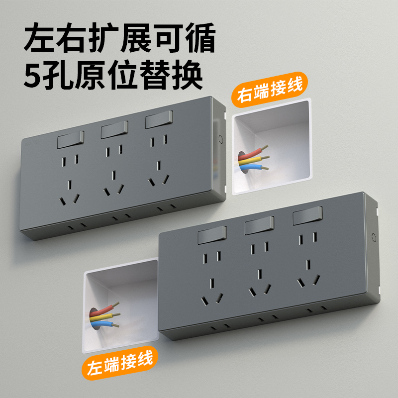 厂家直销86型嵌入式扩展插座一转多向左拓展插座厨房原位替换插排