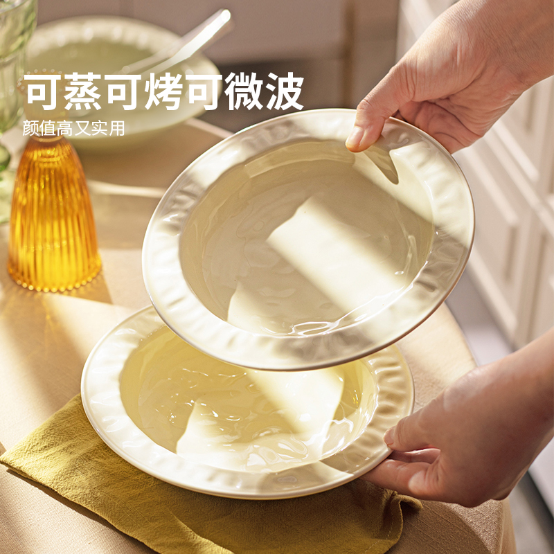 摩登主妇陶瓷盘子家用菜盘高级感意面深盘西餐餐盘2025新款草帽盘
