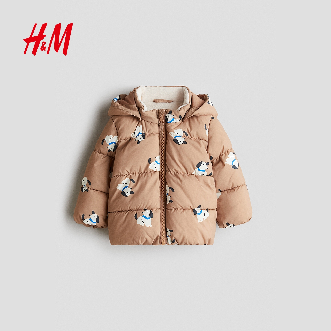 HM童装男婴女婴棉服2025秋新款印花立领连帽夹棉疏水外套1232175
