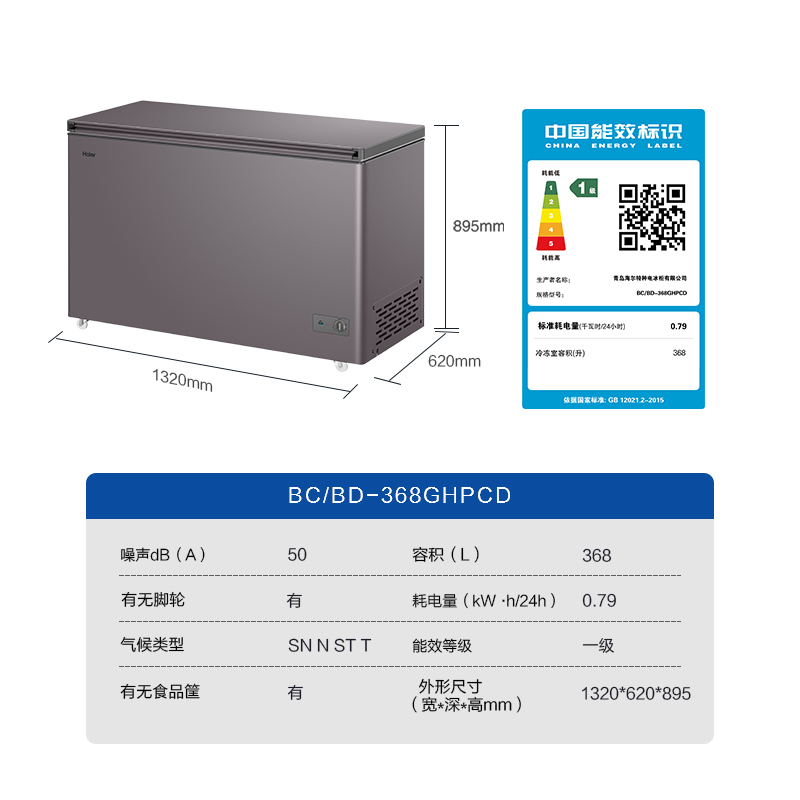 【新品】海尔368L大容量节能家用商用深冷冰柜冷藏冰箱减霜冷柜
