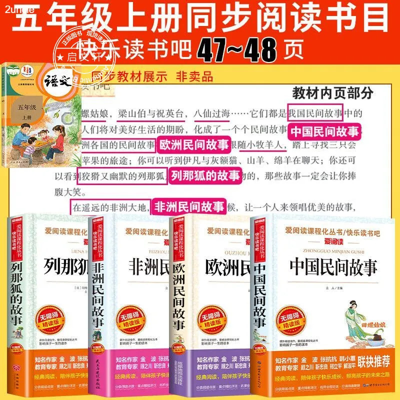正版5册 五年级上册必课外书中国民间故事田螺姑娘列那狐的故事非洲民间故事欧洲一千零一夜小学生课外阅读老师推荐快乐读书吧推荐