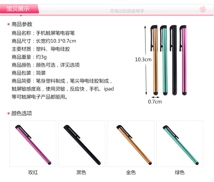 伸缩10支装金属电容笔智能手机学生平板电脑通用触屏手写笔触控笔