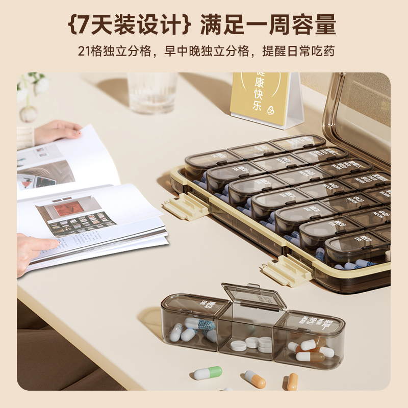 百草园药盒便携式随身药品分装盒一周七天分药器一日三餐药片瓶丸