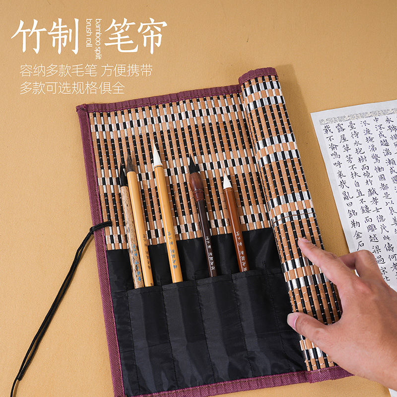轩义堂毛笔笔帘竹子卷笔袋收纳国画毛笔的袋子收纳袋收纳包卷帘竹帘收纳帘书法专用小学生初学者文房四宝笔帘