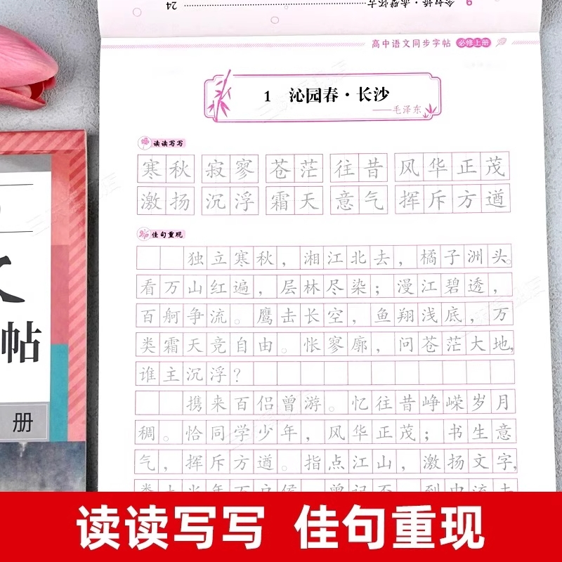高中语文同步字帖必修上册配套人教版高一高中生练字帖正楷临慕字贴必背篇目古诗文72篇和文言文衡水体英语课本作文中文练字本华夏