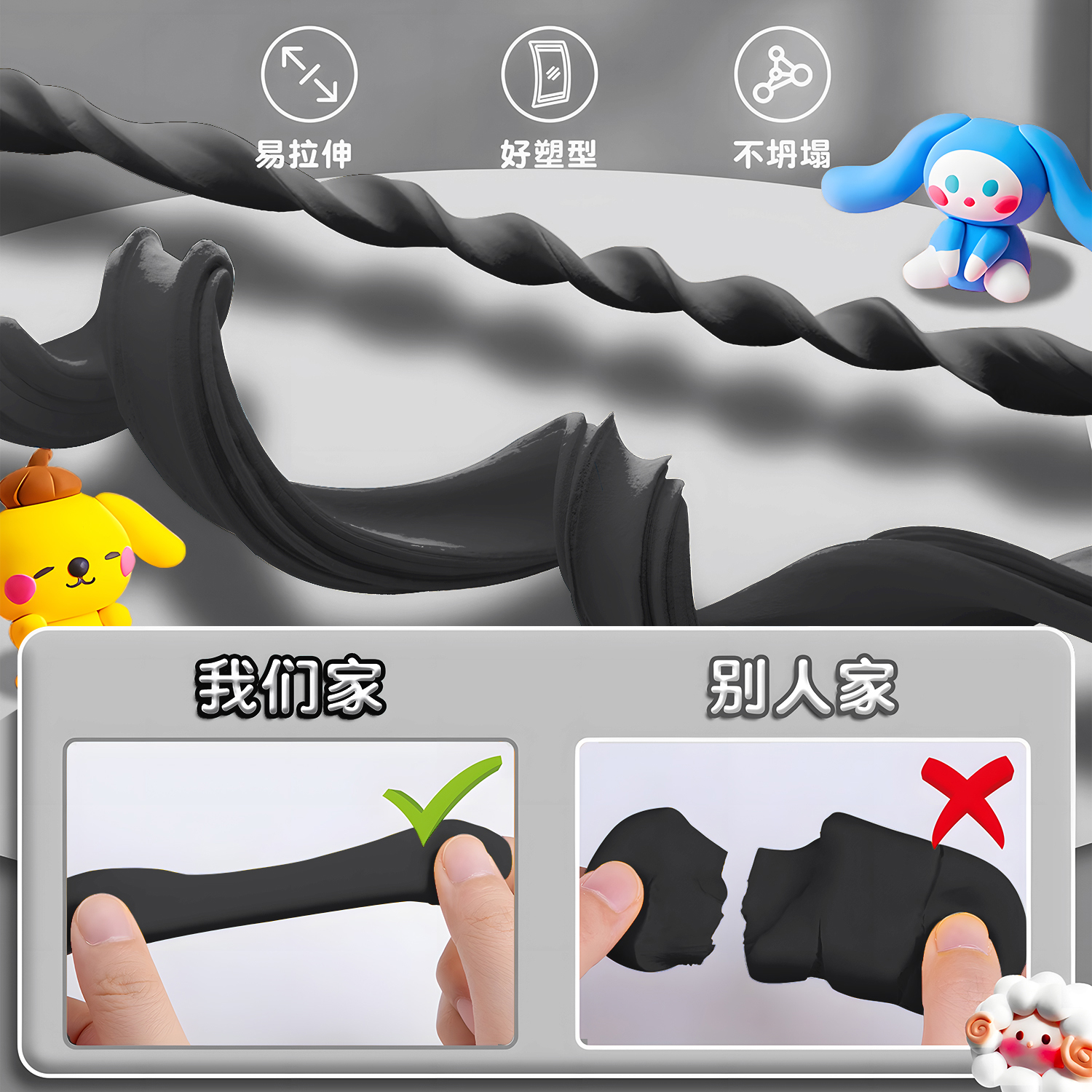 黑色超轻粘土500g大包装儿童安全温和不粘手白色彩泥橡皮泥胶幼儿园玩具diy手办材料包工具套装黏土单色补充