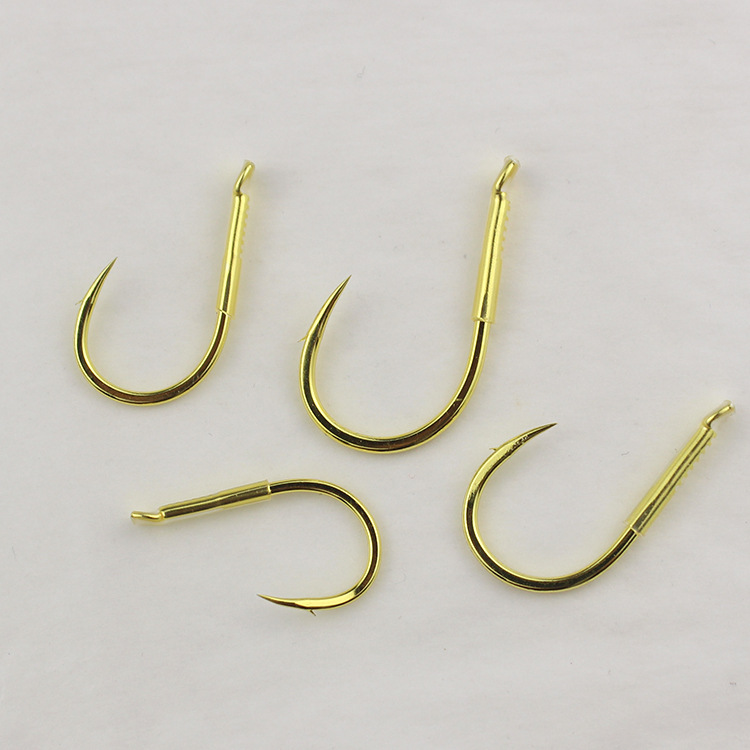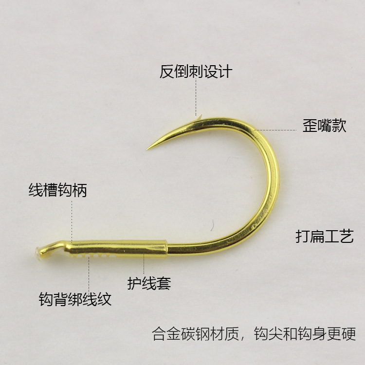 精品珠珠大物钩青鱼千又鱼钩外倒刺歪嘴款加套管鲤鱼浮珠线槽金色