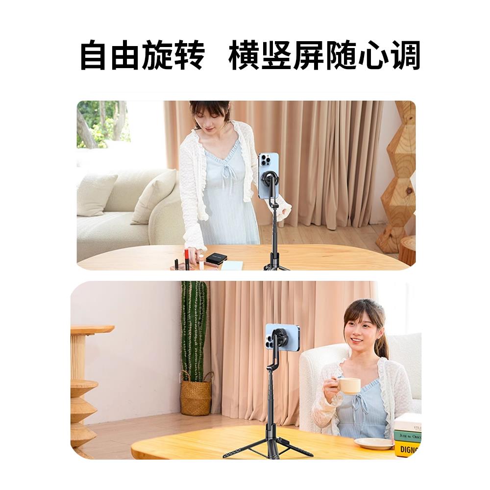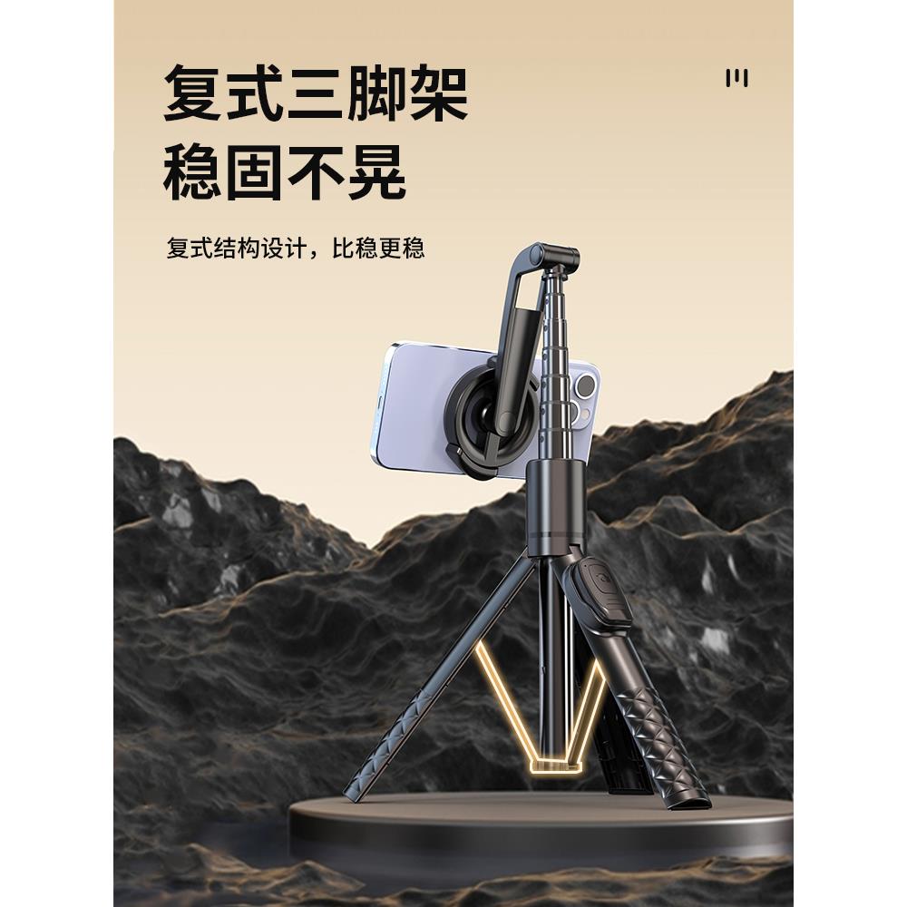 磁吸自拍杆便携手持蓝牙360度旋转多功能伸缩直播支架户外三脚架