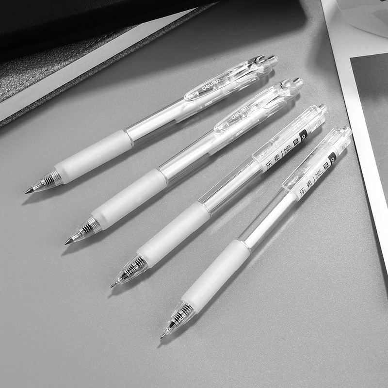 得力中性笔按动式全针管0.35速干乐素无印风高颜值女生款可爱创意冷淡风按压式黑色中性笔碳素笔按动款