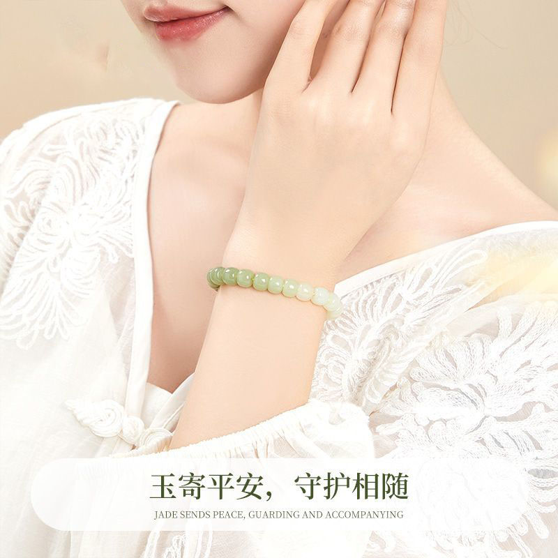 老型珠天然和田玉渐变手串新中式国风女手链桶珠正品玉石素圈手链