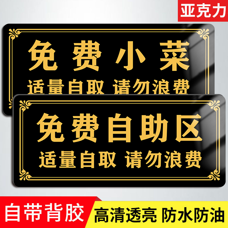 免费小菜提示牌免费自助区调料区指示牌自助调料区指示牌餐具请自取贴免费加饭适量自取请勿浪费温馨提示定制