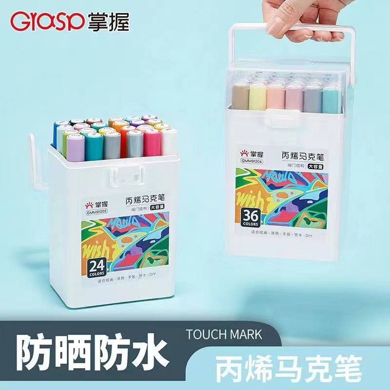 掌握 丙烯马克笔学生用DIY防水24彩色套装手绘涂鸦笔防褪色不透色