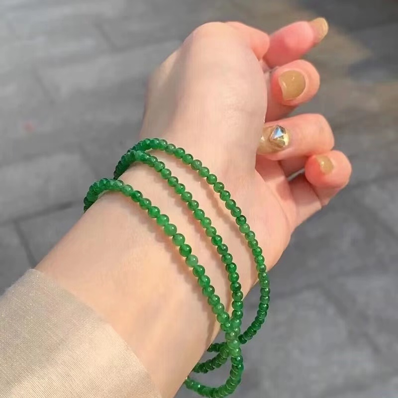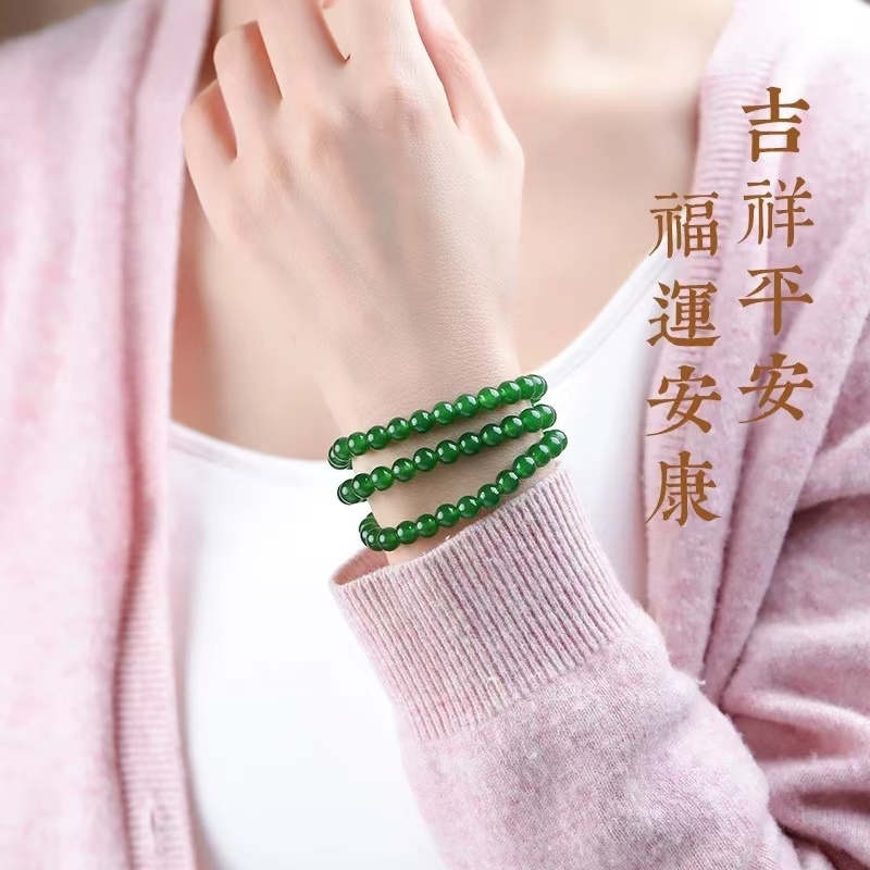 和田玉俄罗斯碧玉仿手链多层菠菜绿玉髓手串送闺蜜首饰手串礼物