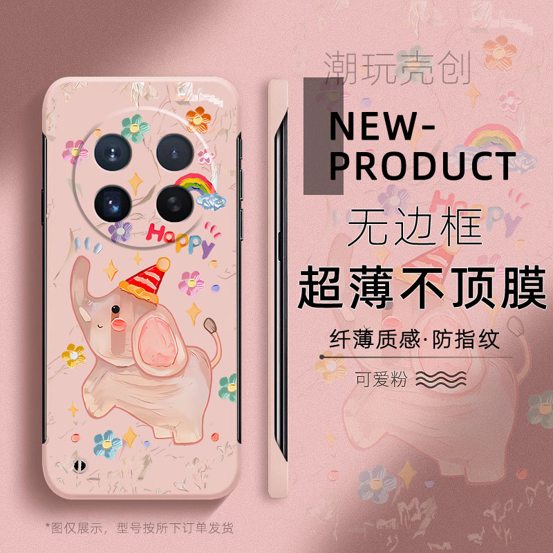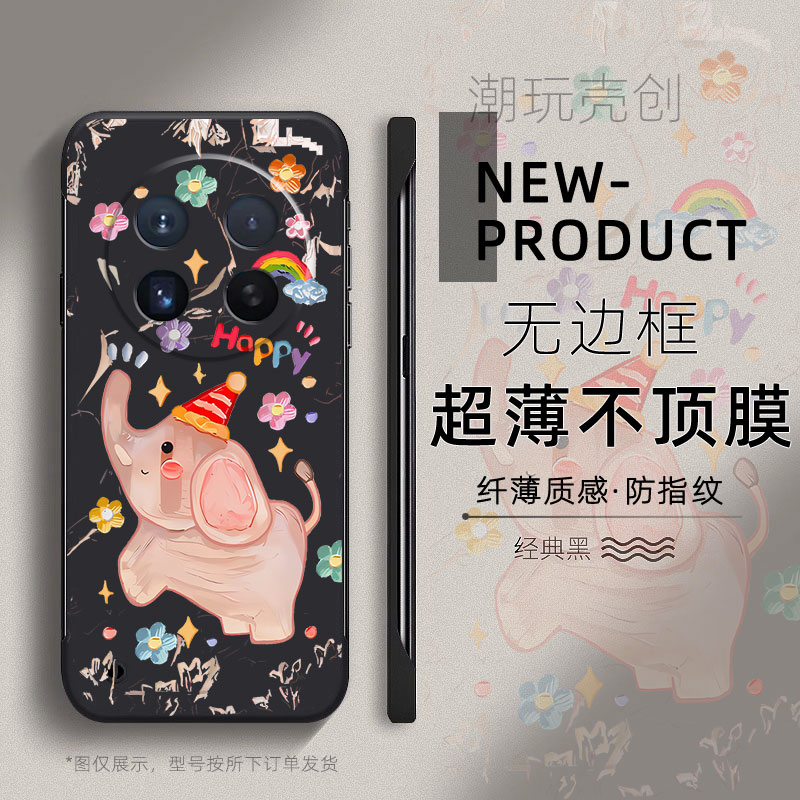 适用于REALME13PRO+手机壳快乐大象油画涂鸦GT7大师NEO6SE超薄无边框不顶膜neo7真我12pro半包GT6防摔硬壳