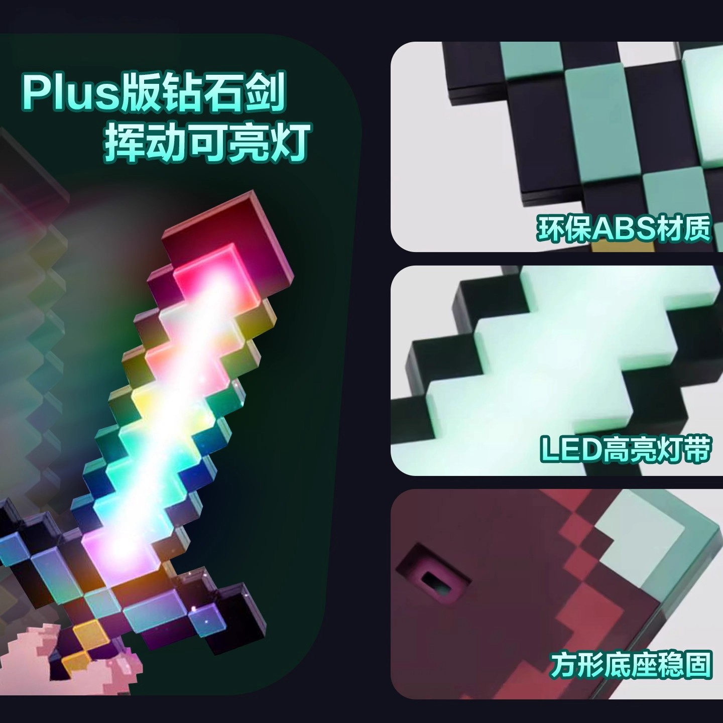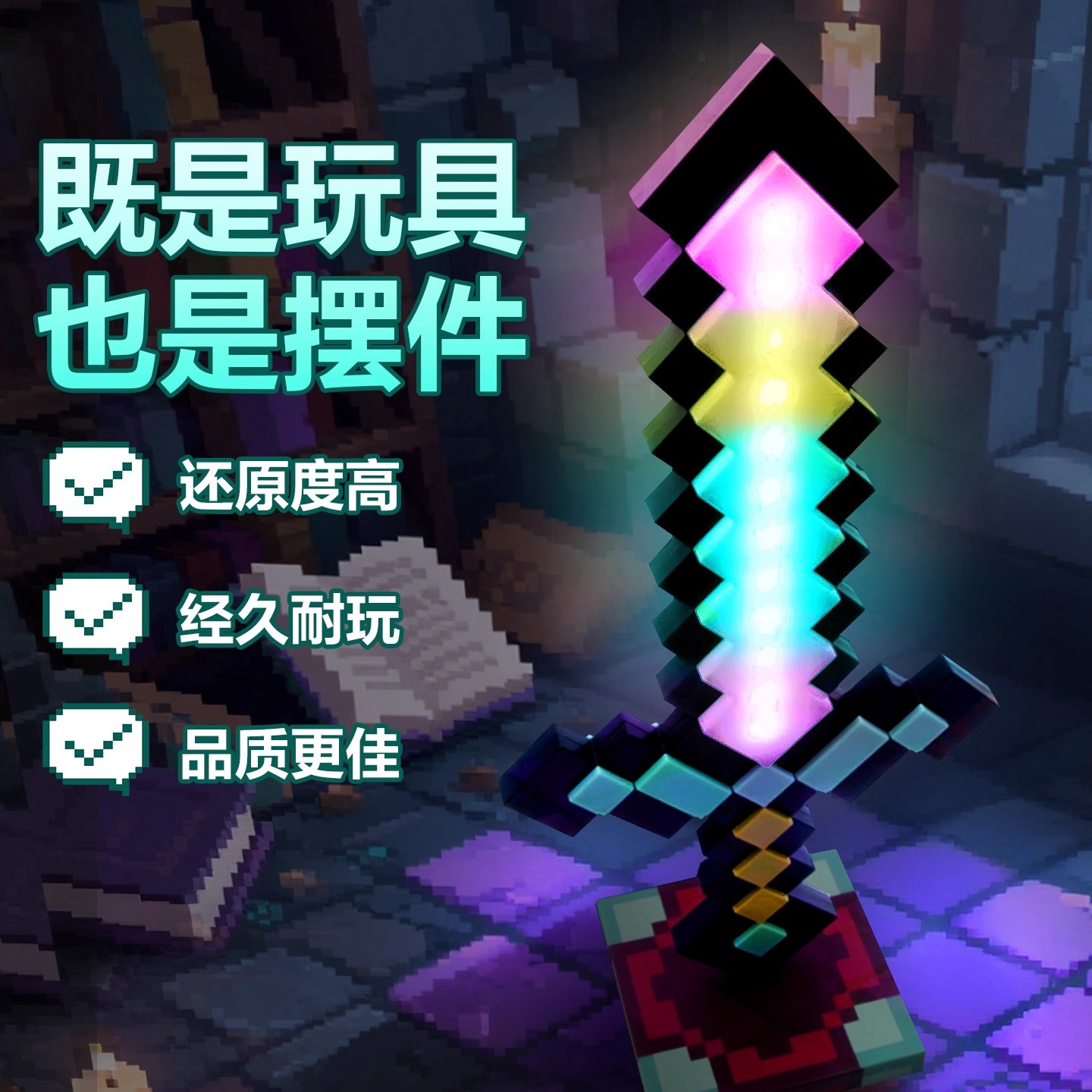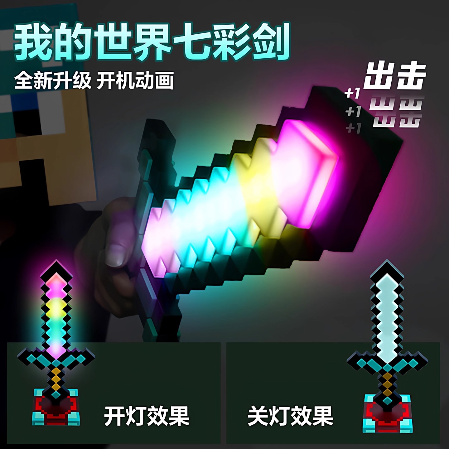 我的世界像素MC七色钻石剑儿童男女孩发光宝剑解压Minecraft玩具